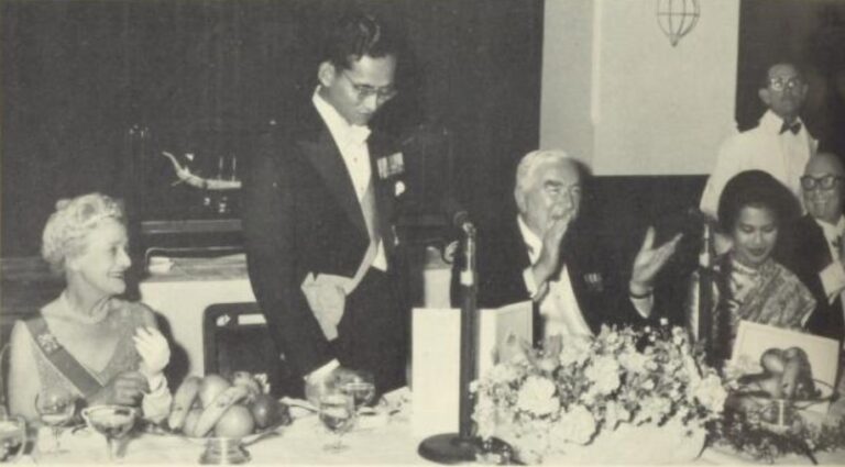 This was a diplomatic forum in which an arch-monarchist like Menzies naturally thrived, organising numerous events for the couple in places as diverse as Darwin and the Port Kembla Steelworks. A highlight was the formal banquet in Canberra at which the King quoted from Menzies’s famous April 1939 statement that Thailand was not the ‘Far East’ as the British called it, but actually the ‘Near North’ of Australia.