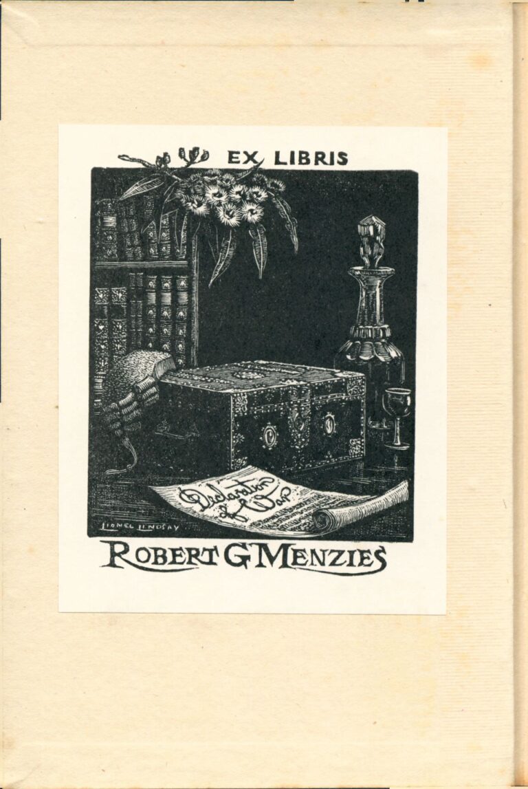 Bookplate inserted; signed in blue ink on front endpaper: “R.G. Menzies from L.S. Amery, July 1947”; also includes typed letter from Amery to Menzies dated 2 July 1947: “My dear Menzies, I enclose herewith a little book which I am bringing out on the subject of the Constitution, I think it may interest you, both for the analysis of the essential principles of that Constitution, and also for the summary of Commonwealth relations to date. I have from time to time I think sent you some of my pessimistic prognostications about the impending economic crisis here. I fear they erred if anything on the side of optimism and that we are going to be confronted by a pretty desperate situation early next year. I doubt very much whether anything will come of Marshall’s suggestions, even if there is going to be American help for Europe it will not be sufficient to see us through here. Our only chance lies in breaking completely away from the American policy of non-discrimination and making such bilateral bargains as we can with those who are content to be paid in British goods for their produce, first and foremost by the rest of the empire and secondly by other countries who are prepared to deal with us on a mutual basis irrespective of precise price levels. In that plight we shall need all that Australia can send us and will I hope by then have the sense to come to long-term preferential agreements which would justify an expansion of Australian output and an increased flow of migration. I am by no means sure that the present discussions over European re-construction will not finally put an end to all illusions about the possibility of co-operation between Western Europe and Russia and her satellites. The danger then will be if Western Europe fails to recover that there may be serious attempts by the Communist in countries like France and Italy to seize control with Russian support and that might well precipitate intervention on the parts of the United States and ourselves. Yours ever [signed] LS Amery.”
