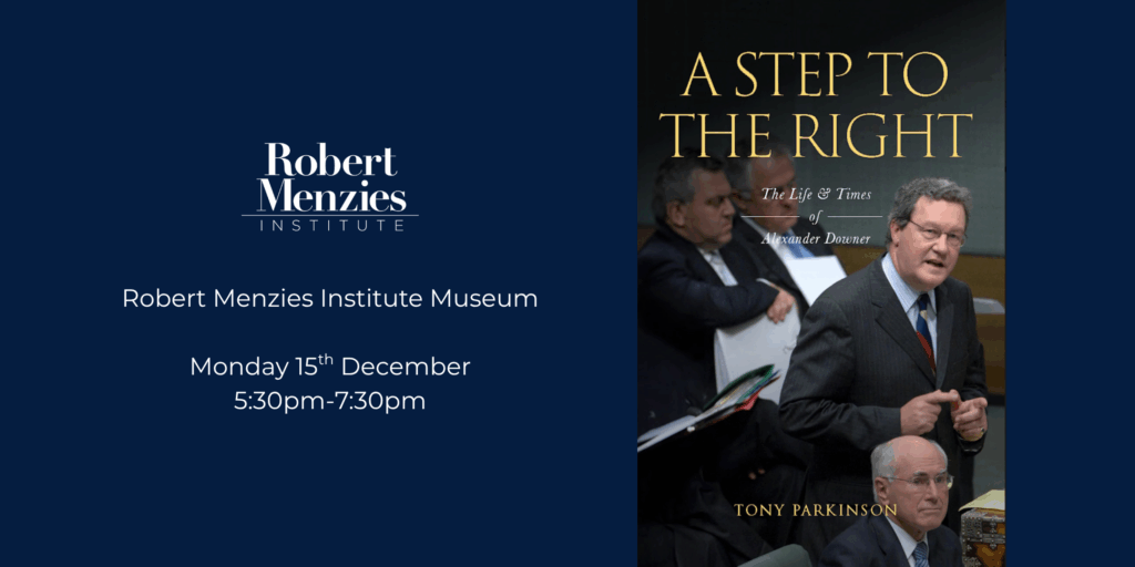 The Robert Menzies Institute invites you to the official launch of A Step to the Right: The Life and Times of Alexander Downer, a landmark new biography by Tony Parkinson that charts the extraordinary career of Australia’s longest-serving Foreign Affairs Minister.